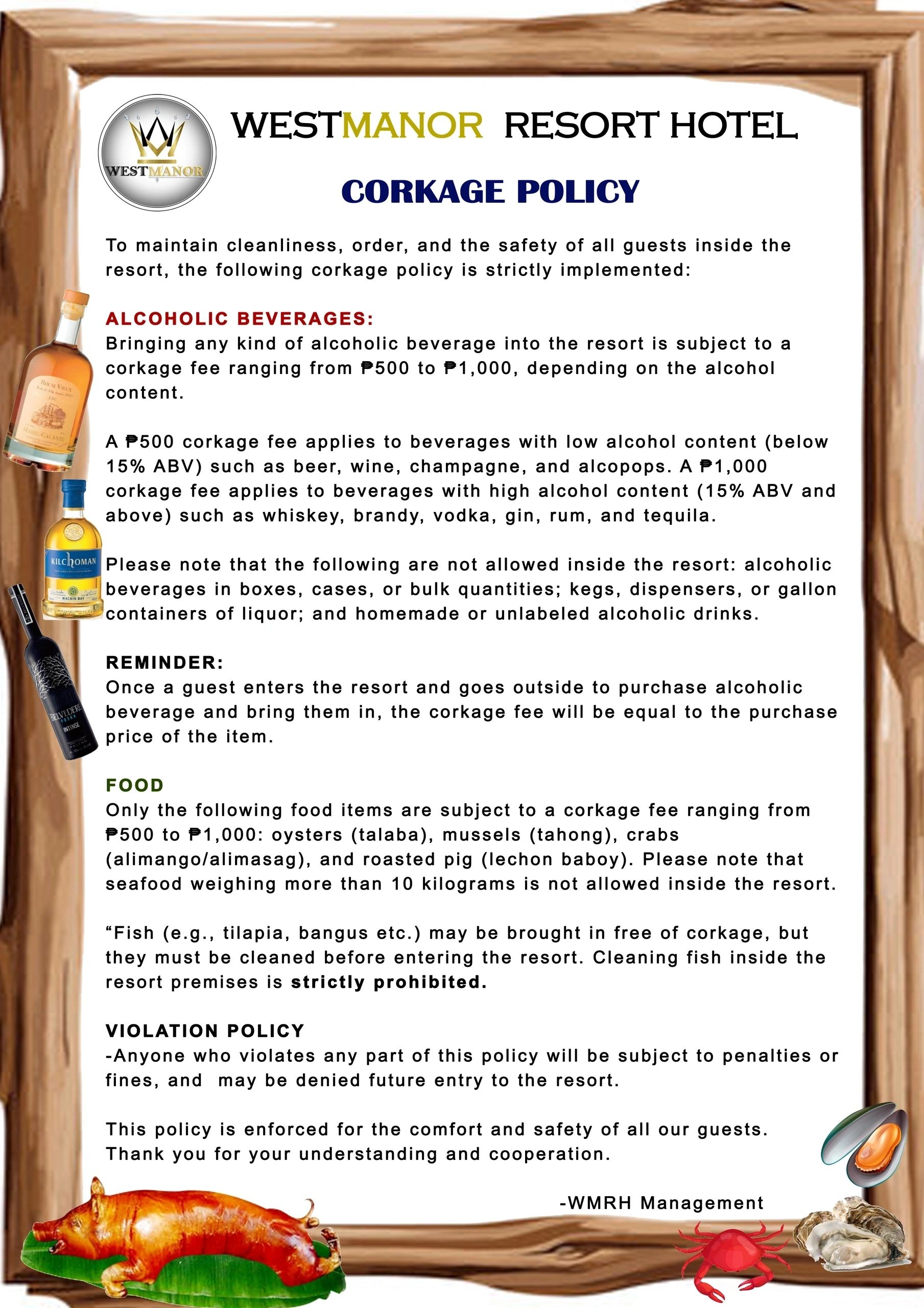 • CORKAGE POLICY